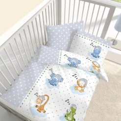 DOBNIG Kinderbettwäsche Bärchen, Silber, Renforcé, 100 X 135 Cm