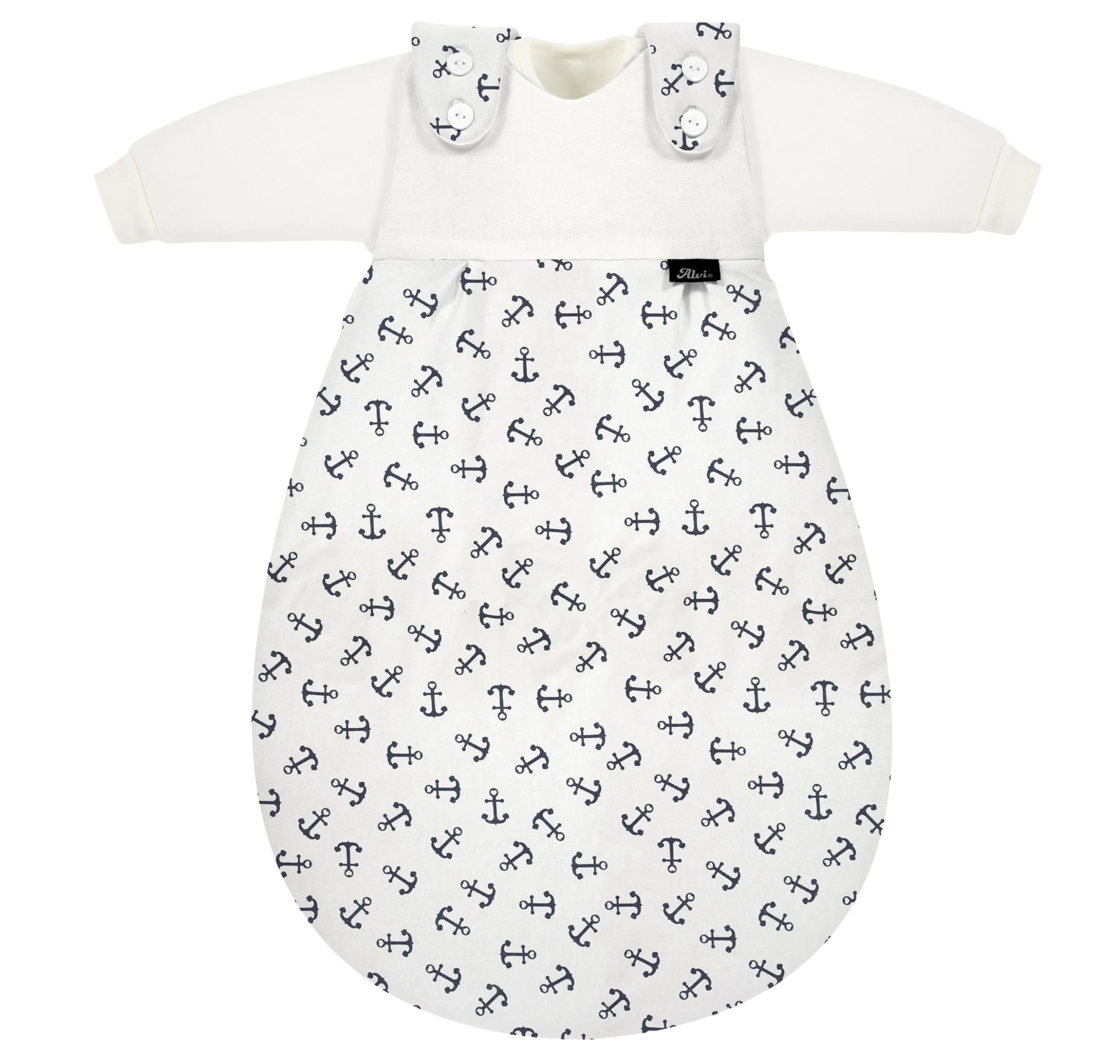 2,5 TOG-Wert Schlafsack. Baby-Mäxchen – Das Original. 3tlg. – bestehend aus 1 (mitwachsenden) Außensack und 2 Innensäcken in aufeinanderfolgenden Größen.Der Schlafsack vermindert gefährlichen Warmestau.Er bietet bedingt durch die Birnenform ein Höchstmaß an Strampelfreiheit und ist über die Knopfleiste in der Größe variabel. Der Innensack ist mit langen Ärmeln und anschmiegsamen Strickbündchen, einzeln auch als leichter Sommersack zu verwenden.