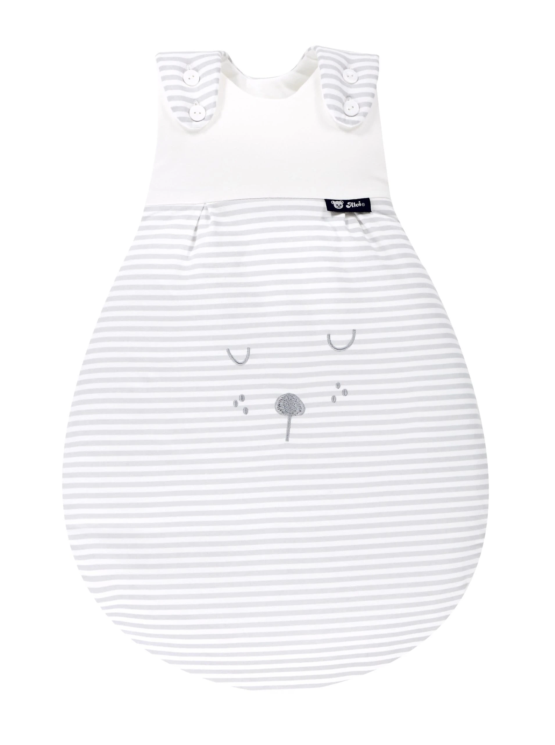 2,5 TOG-Wert Schlafsack. Baby-Mäxchen – Außensack – Special Fabrics – außergewöhnliche Stoffstrukturen aus 100% Baumwolle – Der Schlafsack vermindert gefährlichen Warmestau. Er bietet bedingt durch die Birnenform ein Höchstmaß an Strampelfreiheit und ist über die Knopfleiste in der Größe variabel. Durch den umlaufen den Reißverschluss ist kein Einklemmen der zarten Babyhaut am Hals möglich. Der Außensack ist aus kuschligem Baumwoll-Jersey und leicht wattiert. DasRückenteil ist ohne störende Naht gefertigt. Zusätzlich sind am Außensack Kabelauslassöffnungen eingearbeitet. Der Schlafsack ist bis 60° waschbar und kann bei reduzierter thermischer Beanspruchung getrocknet werden.