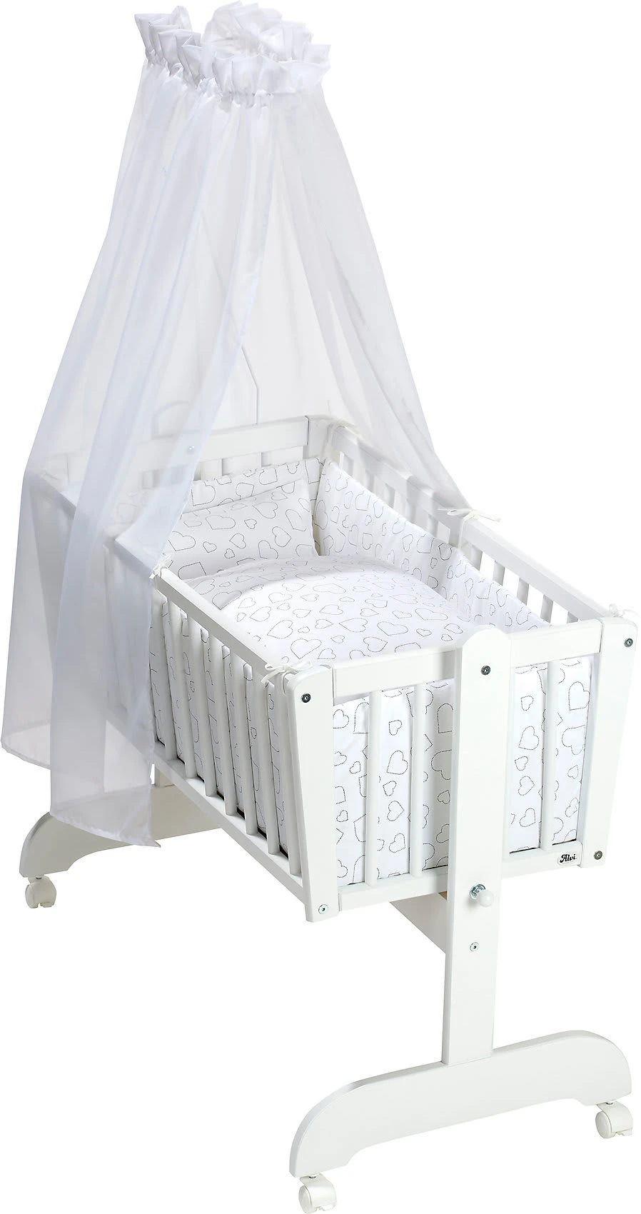 – Wiegengarnitur, bestehend aus Bettwäsche, Nestchen und Himmel