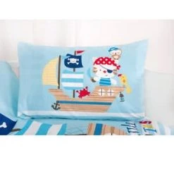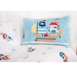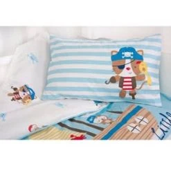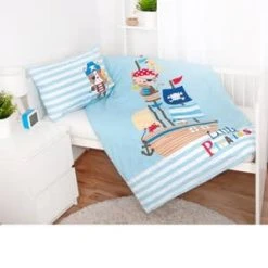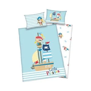 Diese Bettwäsche von Herding ist die perfekte Wahl für kleine Piratinnen und Piraten. Bettwäsche Little Pirates von Herding Wendemotiv Kissenbezug 40(B) x 60(L) cm mit Hoteleinschlag Bettbezug 100(B) x 135(L) cm mit Reißverschluss Linon-Qualität reine Baumwolle Die Bettwäsche ist aus Baumwoll-Linon gefertigt. Dieser Webstoff punktet mit seinen robusten, scheuerbeständigen und gleichzeitig weichen Eigenschaften. Außerdem ist die Materialart atmungsaktiv und saugfähig – optimal für entspannten Schlaf. Für einfaches Beziehen sind die Bezüge mit einem Hoteleinschlag und einem Reißverschluss ausgestattet. Sie lassen sich bei 60 °C in der Waschmaschine reinigen und sind trocknergeeignet. Tolles Detail: Kopfkissen- und Bettdeckenbezug sind mit unterschiedlich bedruckten Seiten versehen. So ist immer für Abwechslung gesorgt.