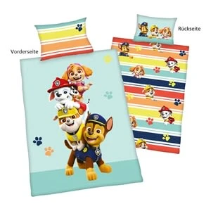 Die tierisch starke Bettwäsche von Herding mit den Helden der Paw Patrol bietet den Kleinen weichen Schlafkomfort. Der glatte Renforcé ist aus reiner Baumwolle gefertigt, überzeugt mit temperaturausgleichenden Eigenschaften und einer guten Feuchtigkeitsaufnahme. 2-tlg. Renforcé-Bettwäsche von Herding wendbares Design mit Paw Patrol-Print Bettdeckenbezug (100(L) x 135(B) cm) mit Reißverschluss Kopfkissenbezug (40(L) x 60(B) cm) mit Hotelverschluss Renforcé-Qualität aus reiner Baumwolle Der süße Print und die komfortable Renforcé-Qualität laden die Kids direkt zum Einkuscheln ein. Der praktische Reißverschluss an der Decke und der Hotelverschluss am Kissenbezug gestalten das Auf- und Abziehen kinderleicht. Beide Teile des Bettwäsche-Sets können bei 60 Grad in der Waschmaschine gereinigt werden.