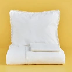 Die Babykollektion von “Bella Maison” besticht durch den reinen Baumwollanteil und die farbneutralen Designs. Die Bettwäschesets “Stella” sind mit ihrem Klöppeldetail ein Blickfang für Ihr Babyzimmer. Die Baumwollbettwäsche bietet mit ihrer Ranforce-Qualität einen weichen Griff. Die Feinheit der Fasern macht dieses Set hautfreundlich und komfortabel. Kopfkissenbezug und Bettbezug sind mit Knopfverschluss ausgestattet.