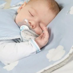 roba Schlafsack, 90cm, unisex, Kollektion ‘Kleine Wolke blau’. Die roba Baby- und Kleinkinderschlafsäcke sind bequeme und sichere Begleiter für die Nacht und sorgen für ein gesundes Schlafklima. Der Schlafsack ersetzt die herkömmliche Baby Zudecke, und verhindert, dass sich das Baby von der sicheren Rückenlage in die als kritisch beurteilte Bauchlage dreht. Durch die weiche Füllung und dem strampelbequemen Schnitt ohne Ärmel ist der Schlafsack ganzjährig verwendbar und sorgt für die nötige Wärme in der Nacht ohne zu überhitzen. Die klassische Birnenform bietet dem Baby viel Bewegungsfreiheit. Der lange Reißverschluss seitlich am Schlafsack erleichtert das An- und Ausziehen. Das Oberstoffmaterial ist aus reiner und hautfreundlicher Baumwolle und die Füllung antiallergischem, atmungsaktivem Polyestervlies gefertigt. Alle verwendeten Materialien des Babyschlafsackes sind schadstoffgeprüft und zertifiziert. Zusätzlich werden die Schlafsäcke regelmässig während der Herstellung überprüft. Der roba Markenschlafsack ist in der Maschine waschbar, sowie trocknergeeignet. Er ist in mehreren Größen und Designs erhältlich. Abhängig von der Jahreszeit müssen Sie die Schlafkleidung Ihres Kindes anpassen. Beispielweise, im Herbst und Winter sollten Sie dem Baby einen langärmeligen Schlafanzug bzw. einen Langarm-Body anziehen. An warmen Tagen greifen Sie lieber zu einem Kurzarm-Body bzw. einem kurzärmeligen Schlafanzug. Prüfen Sie immer, ob Ihrem Kind zu warm ist oder doch zu kalt. Jedes Kind ist anders, deswegen müssen Sie es genau beobachten. Warme Füße und ein warmer, trockener Nacken sind Zeichen, dass sich Ihr Baby wohlfühlt.